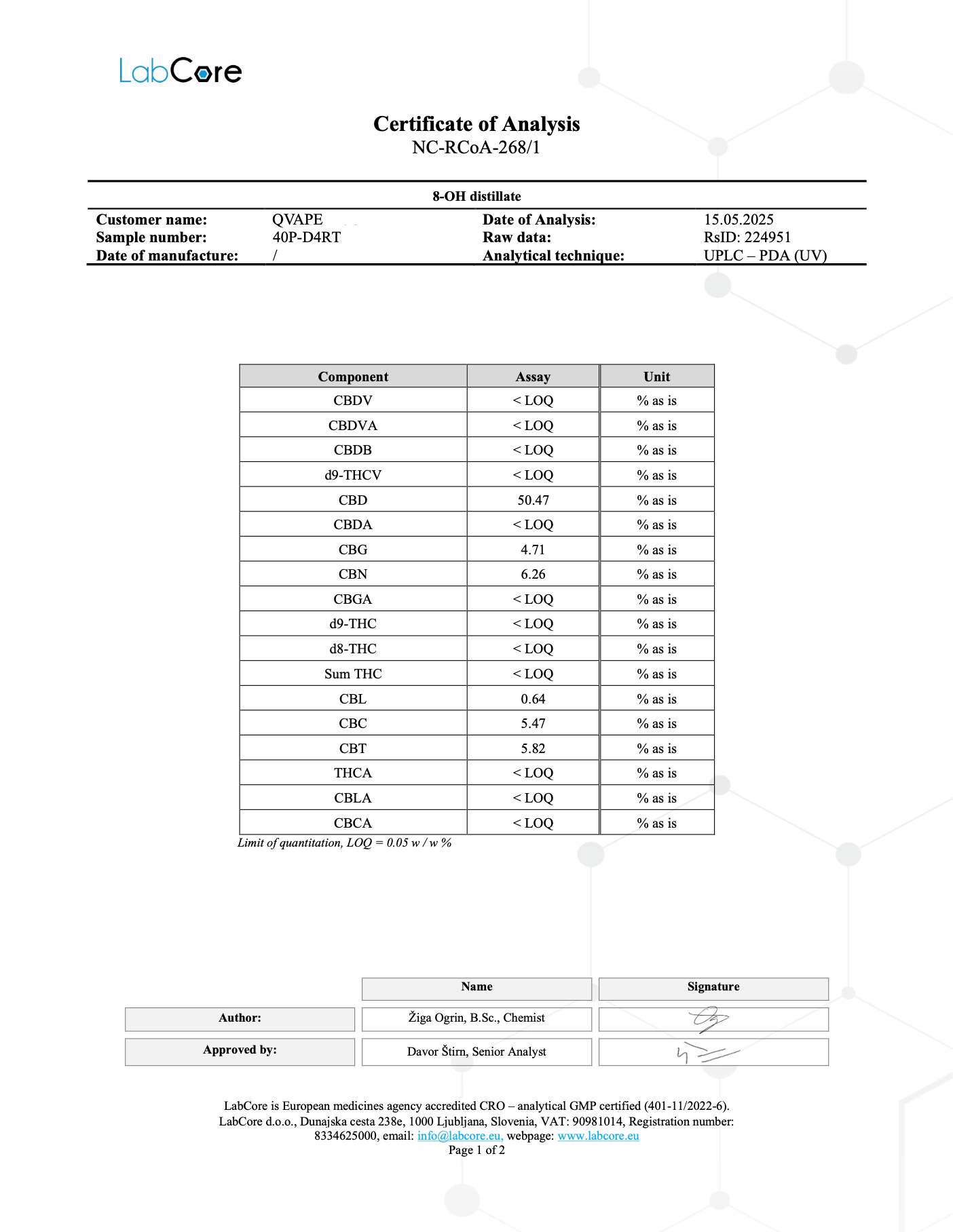 VÄr QVape-olja tillverkas i GMP-certifierade laboratorier utanför Amsterdam. Varje batch-tester av oberoende europeiska laboratorier för att sÀkerstÀlla renhet, exakt cannabinoidprofil, legalitet och att produkten Àr fri frÄn tungmetaller eller rester av lösningsmedel.