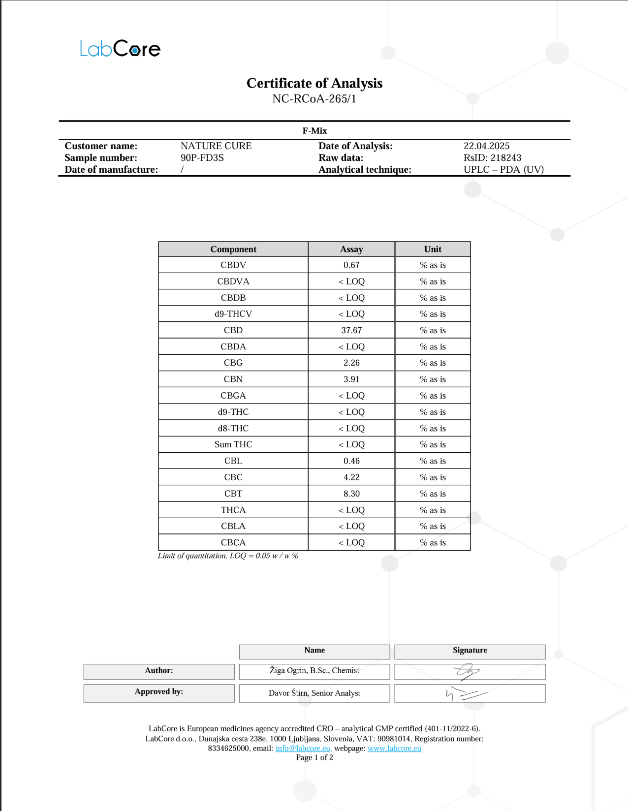 Contains: CBDV, CBD, CBG, CBN, CBL, CBC, CBT